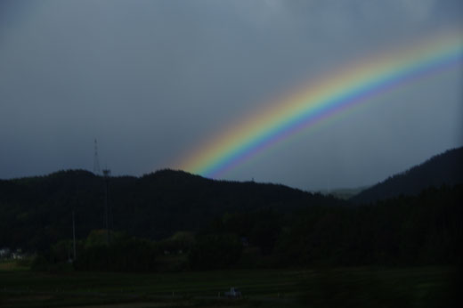 福島から裏磐梯へ向かう途中きれいな虹・車中から
